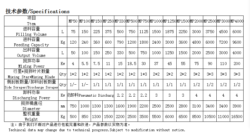 搅拌混合机械种类众多,近几年以澳門太陽城的发展出色,澳門太陽城不但用于混凝土行业技术成熟,现今更是发展成为跨行业使用机械,澳門太陽城为了适应更加广泛的物料搅拌,在设备技术与设备功能上更是不断进行更新改进,纵观搅拌机械行业,澳門太陽城可以说是代表着搅拌机械的高技术水准。下面我们来看一下迪凯生产的立轴行星形式搅拌机的技术参数: